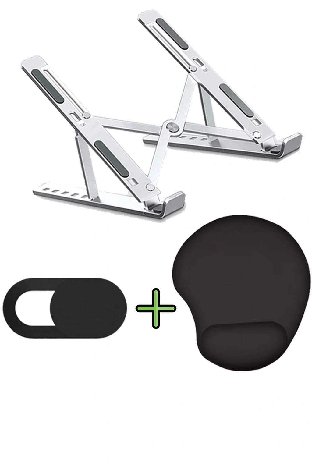 Alüminyum Katlanabilir Ayarlı Dizüstü Laptop Standı Tablet Standı, Kamera Kapatıcı, Mousepad