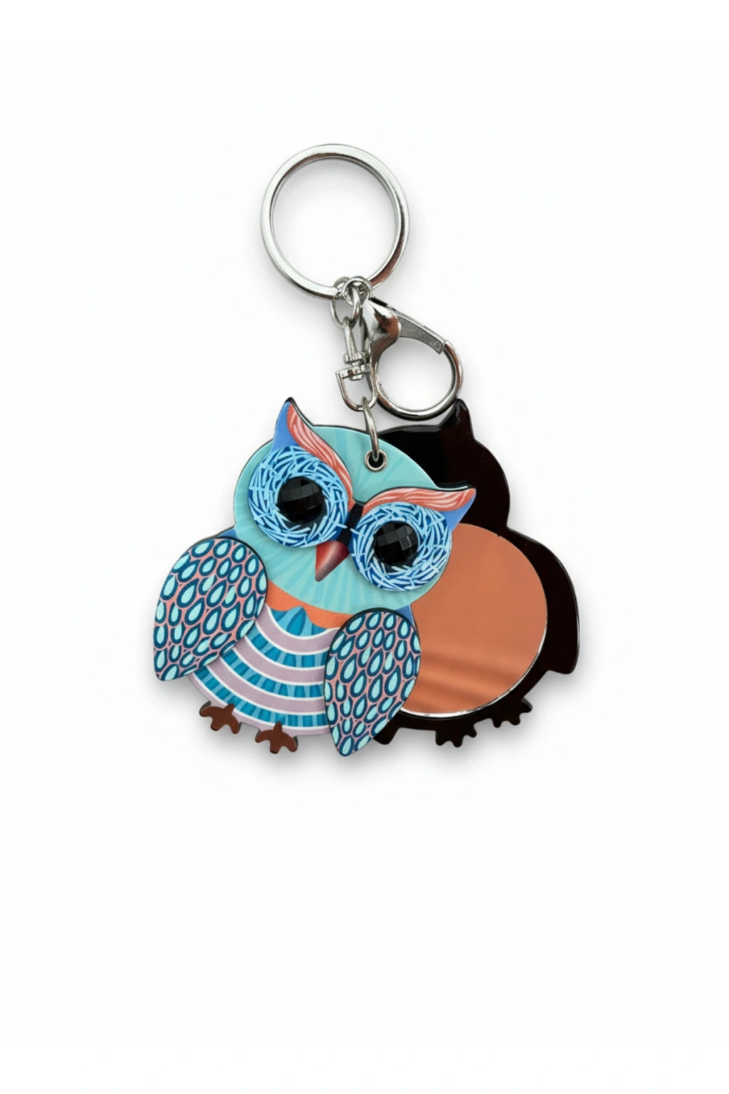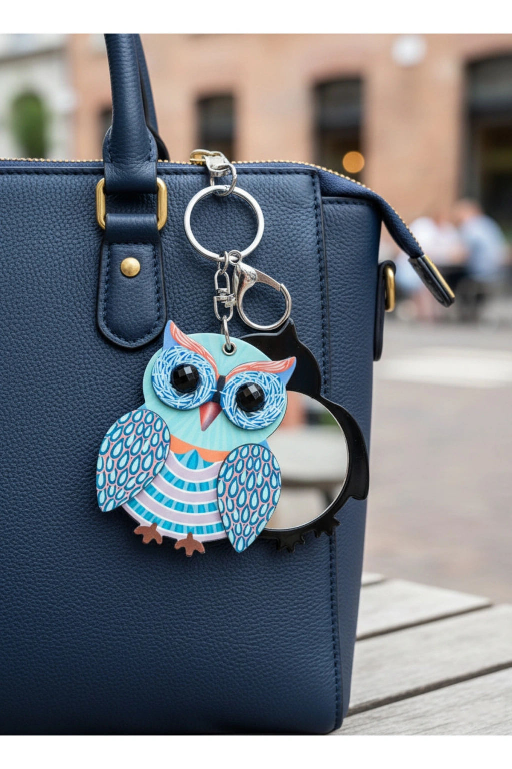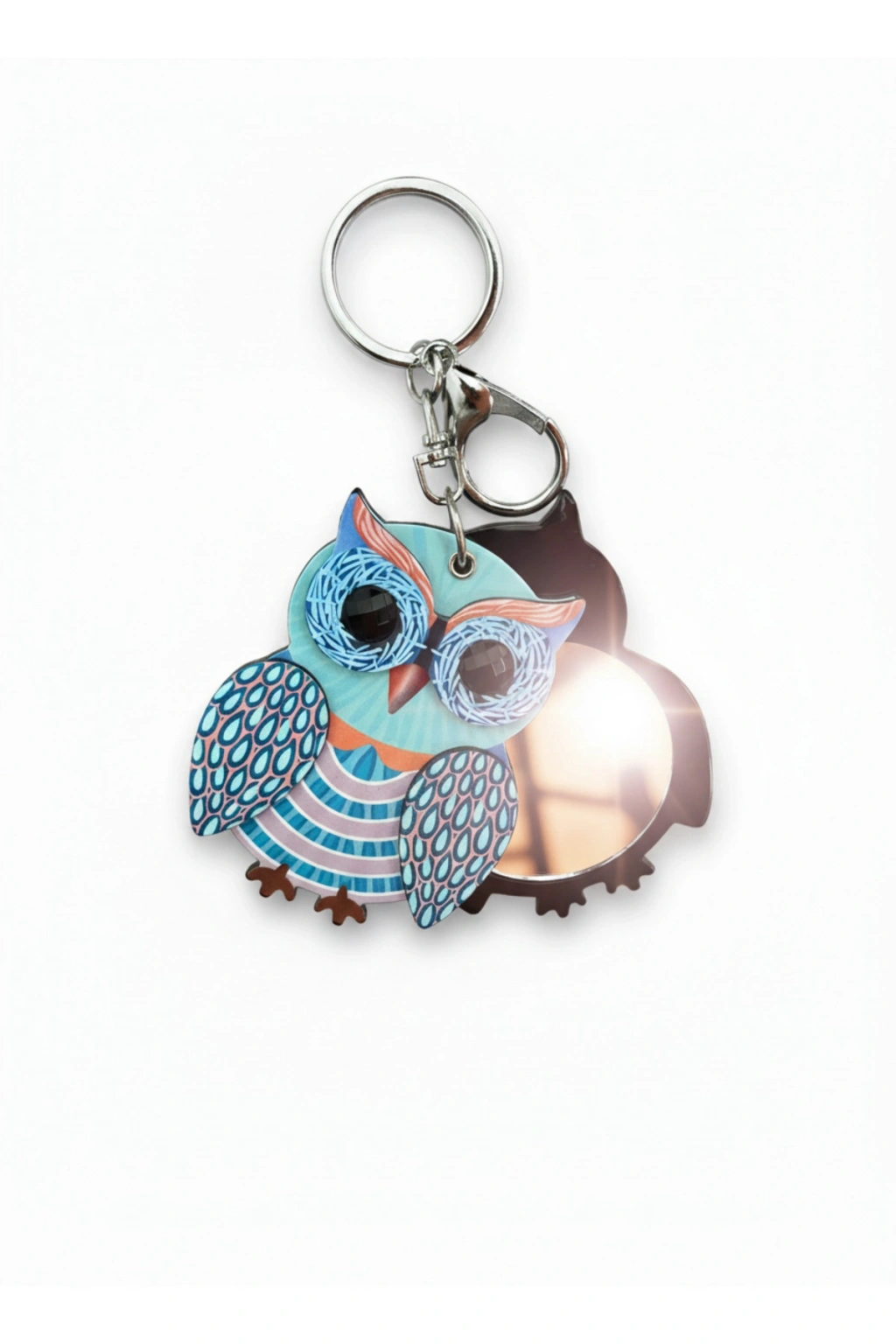 Baykuş Figürlü Aynalı Anahtarlık, Çanta Süsü, Çanta, Cüzdan Aksesuarı, Baykuş Temalı Aynalı Anahtar