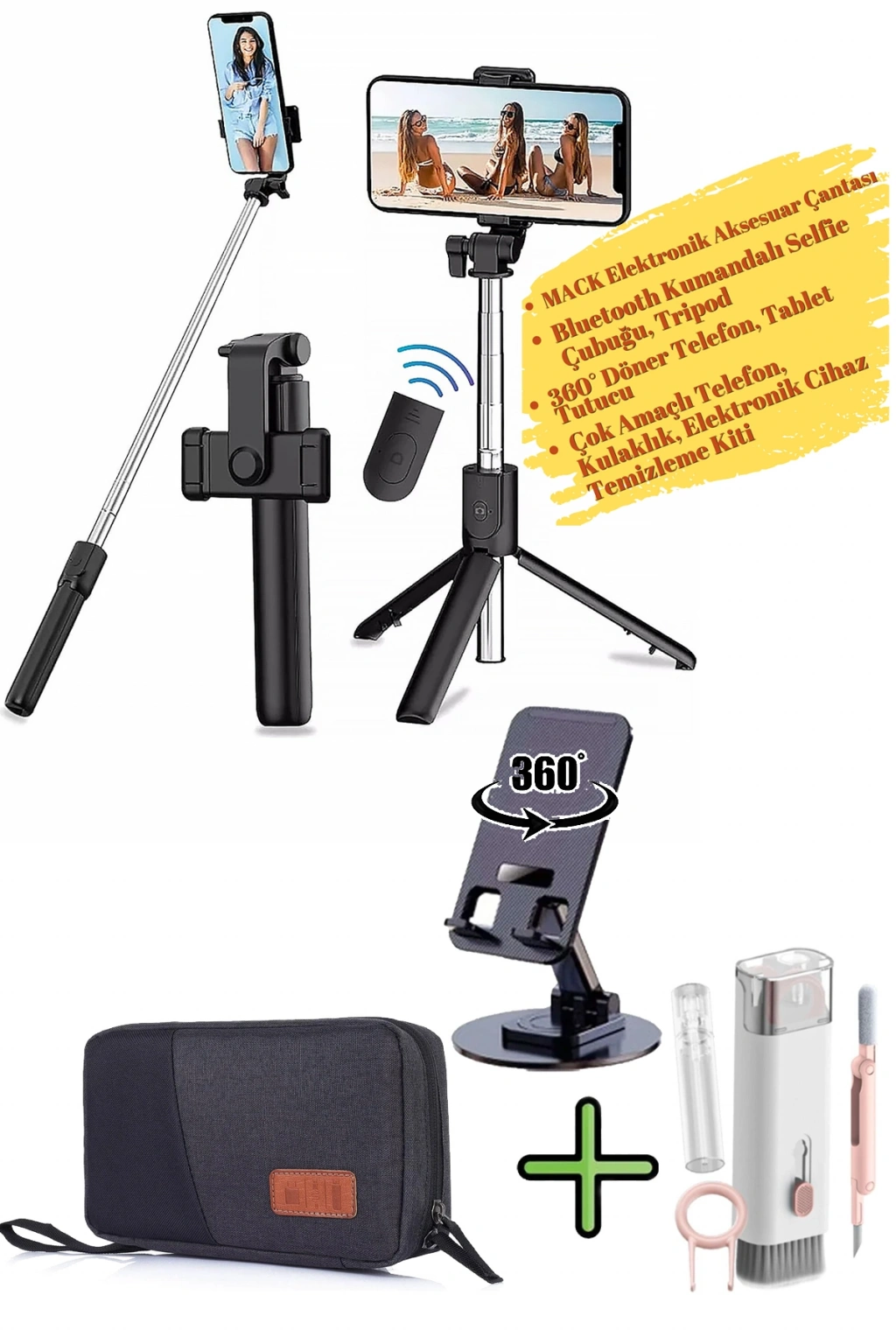 - 1 Adet Bluetooth Kumandalı SelfieÇubuğu Tripod