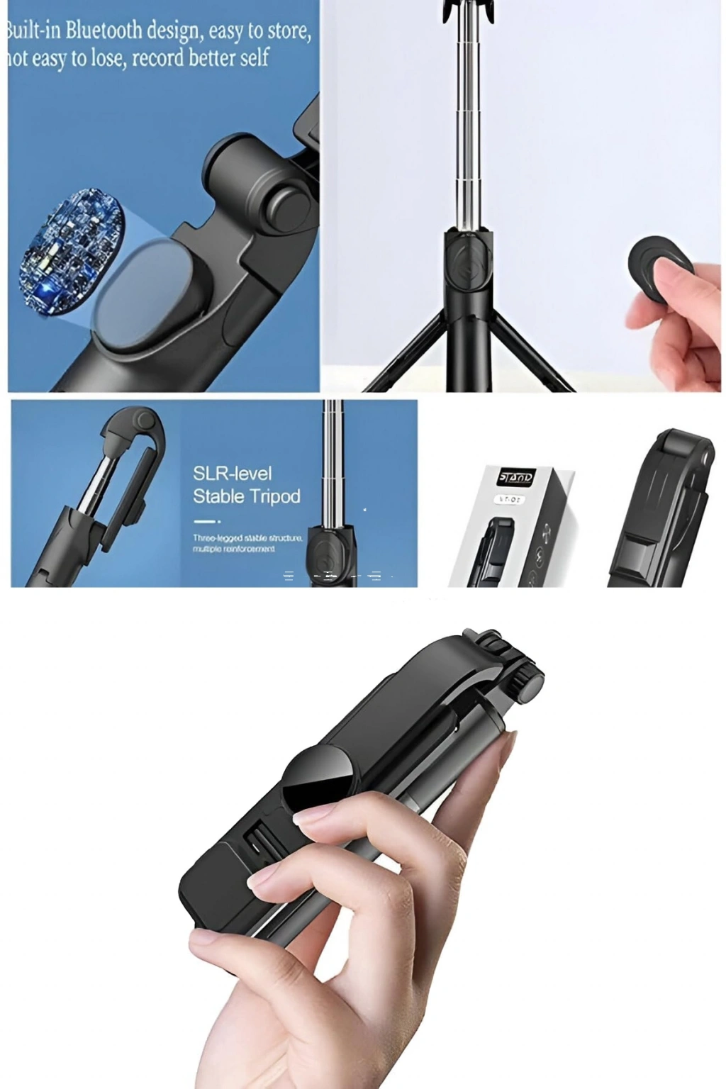 Kablosuz uzaktan kumandalı tripod selfie çubuğu, kompakt ve taşınabilirtasarımı ile her yerde pratik kullanım sunar.