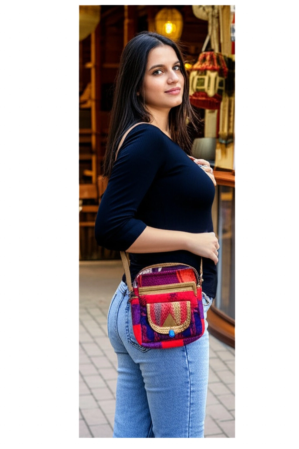Günlük hayatına sıcak ve otantik bir dokunuş katmak ister misin? El emeğiyle üretilmiş bu etnik desenli omuz çantası, tarzını yansıtmanın en doğal yolu! Geleneksel kilim dokuma kumaşıyla hazırlanmış, hem şık hem de kullanışlı bir model.