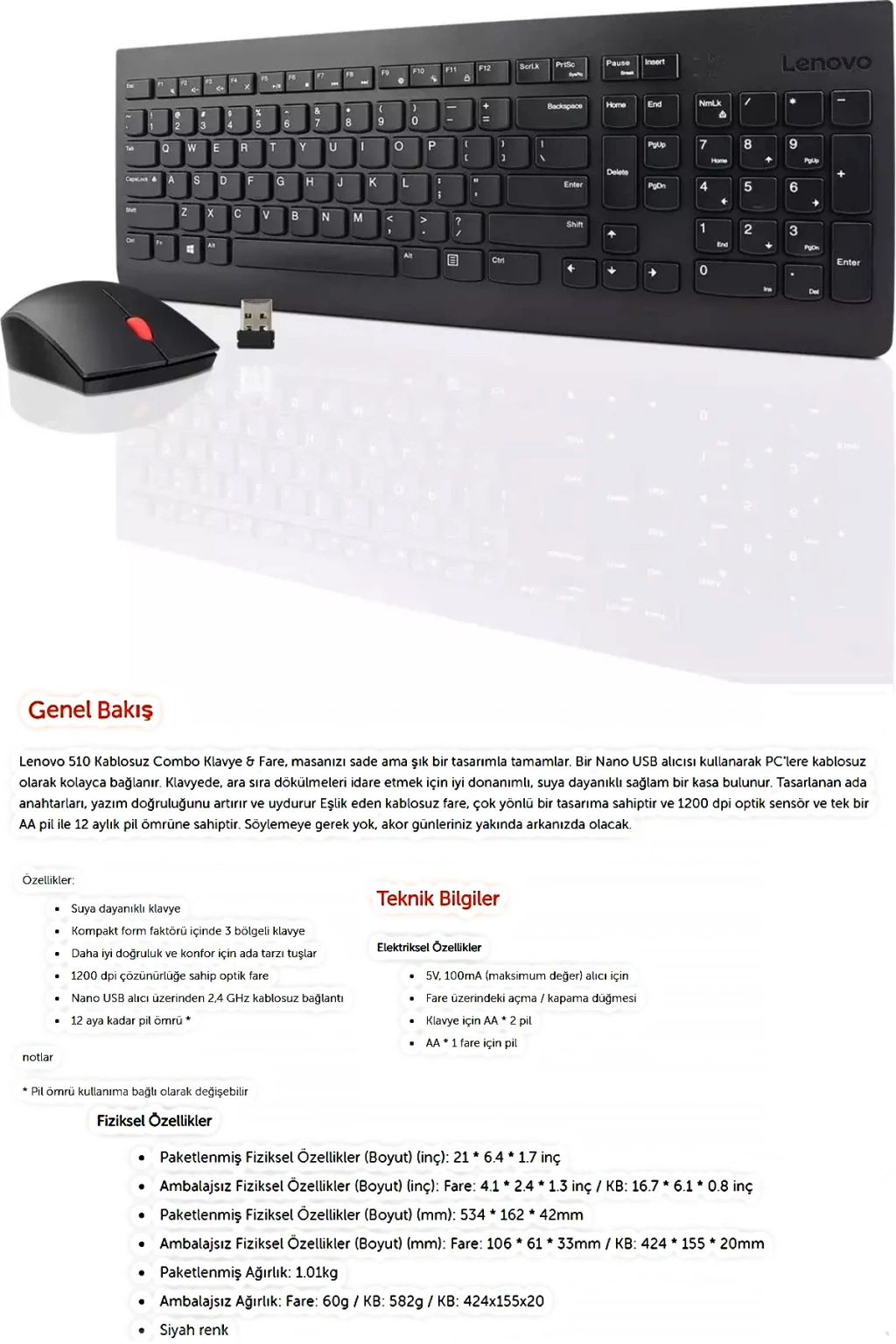 2 yıl garanti süresi ile güvenilir kullanım sunar, olası teknik sorunlarda endişe etmenize gerek kalmaz; Kablosuz bağlantı özelliği sayesinde kablo karmaşasına son verir ve çalışma alanınızı düzenler; Siyah renk seçeneğiyle şık ve modern bir görünüm sağlar, ofis veya ev ortamınıza kolayca uyum sağlar;