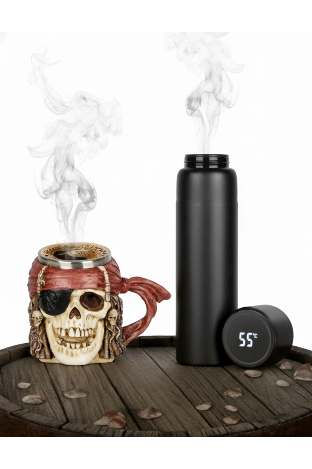 - Korsan Kupa Paslanmaz çelik malzemesi sayesinde uzun ömürlü ve dayanıklı kullanım sunar.; - 500 ml hacmiyle çay, kahve gibi içeceklerinizi keyifle yudumlayabilirsiniz.; - Elde yıkama talimatına uygun şekilde temizlenmesi, ürünün formunu ve parlaklığını korur.; - Çok renkli tasarımı ile göz alıcı bir görünüm sağlar ve mutfak dekorasyonunuza renk katar.; - Tek parça halinde gelen bu kupa bardak, kolayca saklanabilir ve pratik kullanım imkanı sunar.; - Denizcilik temalı kabartmalı tasarımıyla dikkat çeker ve denizcilik tutkunlarına özel bir hediye alternatifi oluşturur.; –Dijital Termoz: Kullanım amacı sıcak ve soğuk içeceklerinizi 8 saat süresince ilk ilave ettiğiniz ısıda muhafaza eder.; Anlık olarak sıvının sıcaklık seviyesini dijital termometre ile görebilirsiniz.; Termos mataranı dijital göstergeli, led ekranında ısı kontrolünü yaparak dilediğiniz ısı seviyesinde içeceğinizi muhafaza edebilirsiniz.; Paslanmaz çelik sayesinde, uzun ömürlü ve sağlıklı bir şekilde mataranınız kullanabilirsiniz.; Sevdikleriniz, aileniz ve iş arkadaşlarınız için kullanışlı ve pratik bir yol arkadaşı, hediye seçeceği olarak ideal bir fikirdir sıcak ve soğuk içecek tüketmeyi seven herkesin yanı başında olması gereken, pratik ve sağlıklı bir mataradır.; Vakumlu termos: Matara hacim bilgisi: 450 ml kapasitelidir.; Ağırlık bilgisi: Kapak 70 gram, toplam ağırlık 280 gramdır.; Boyut: 23 x 6 cm, kapak: 2,8 x 6,5 cm.; Materyal bilgisi: Çift katmanlı paslanmaz çelikten üretilmiştir.; Iç duvar, "304 sus" paslanmaz çelik, dış duvar, "201 sus" paslanmaz çelik kullanılmıştır.; Kapak: Dijital göstergeli termometre kullanılmıştır.; Isı göstergesi dijitaldir.; Termos kapak silindir şeklinde olup, çapı 6,5 cm'dir.; Içerisinde pil ile gönderilmektedir.; (pil: Cr2450, çip dahil) .; Boyut: Çap: 6,5 cm x toplam yükseklik 23 cm'dir.; Kapak: Çap 6,5 cm x yükseklik 2,8 cm'dir.; Kullanma kılavuzu: Fincanı kullanmadan önce nötr bir temizlik maddesi ile temizleyin.; Ön ısıtma veya ön soğutma için sıcak su (buzlu su) eklerseniz, ısı koruma etkisi daha iyidir.; Sızıntıları önlemek için tapası ve kapağı saat yönünde sıkın.; Test sırasında çipe tamamen dokunmak için önce su kabını çevirin.; Temizleme yöntemi: Her kullanımdan sonra temizlenmelidir.; Lütfen ürünü yumuşak nötr bir temizlik maddesi ile temizleyin.; Ürünün zarar görmesini önlemek için çamaşır suyu veya klor içeren temizlik maddesi kullanmayın.