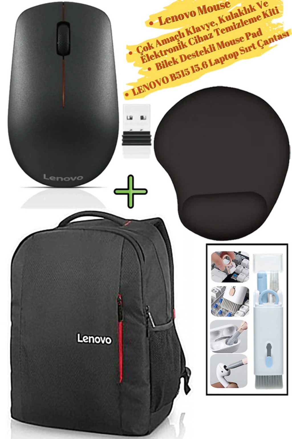Mouse 400, MousePad, Lenovo B515 Laptop Sırt Çantası, Elektronik Cihaz Temizleme Kiti