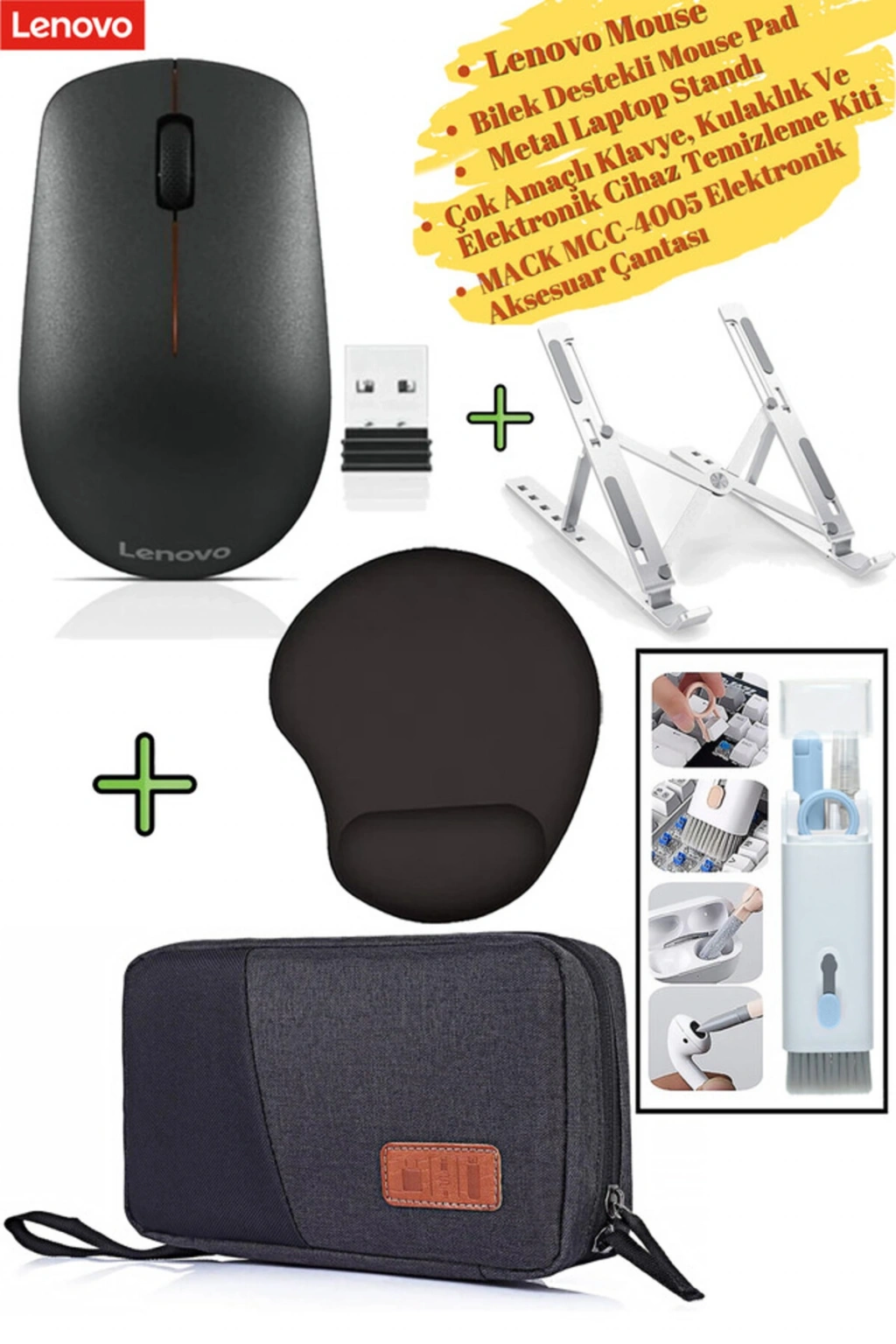 Mouse 400, MousePad, MACK Elektronik Aksesuar Çantası, Metal Laptop Standı, Temizleme Kiti