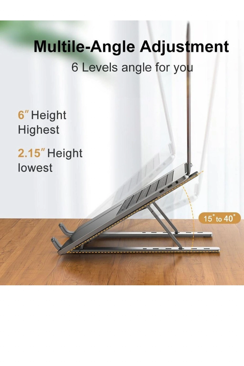 Dizüstü bilgisayar standı, tüm dizüstü bilgisayarlarla uyumludur. 30 kg ağırlığa kadar dayanıklıdır. Yüksekliğini dilediğiniz gibi ayarlayabileceğiniz 6 seviyesi bulunmaktadır. Kullanıcı dostu tasarıma sahiptir. Yüksek mukavemetli alaşımlı malzeme ile oldukça güvenilir bir üründür. Dizüstü bilgisayarınız için daha fazla güvenlik sağlamak amacıyla kaymaz silikon pedler bulunmaktadır. Katlandığında 9,45 × 1,73 inç boyutuna kadar küçülebilir.