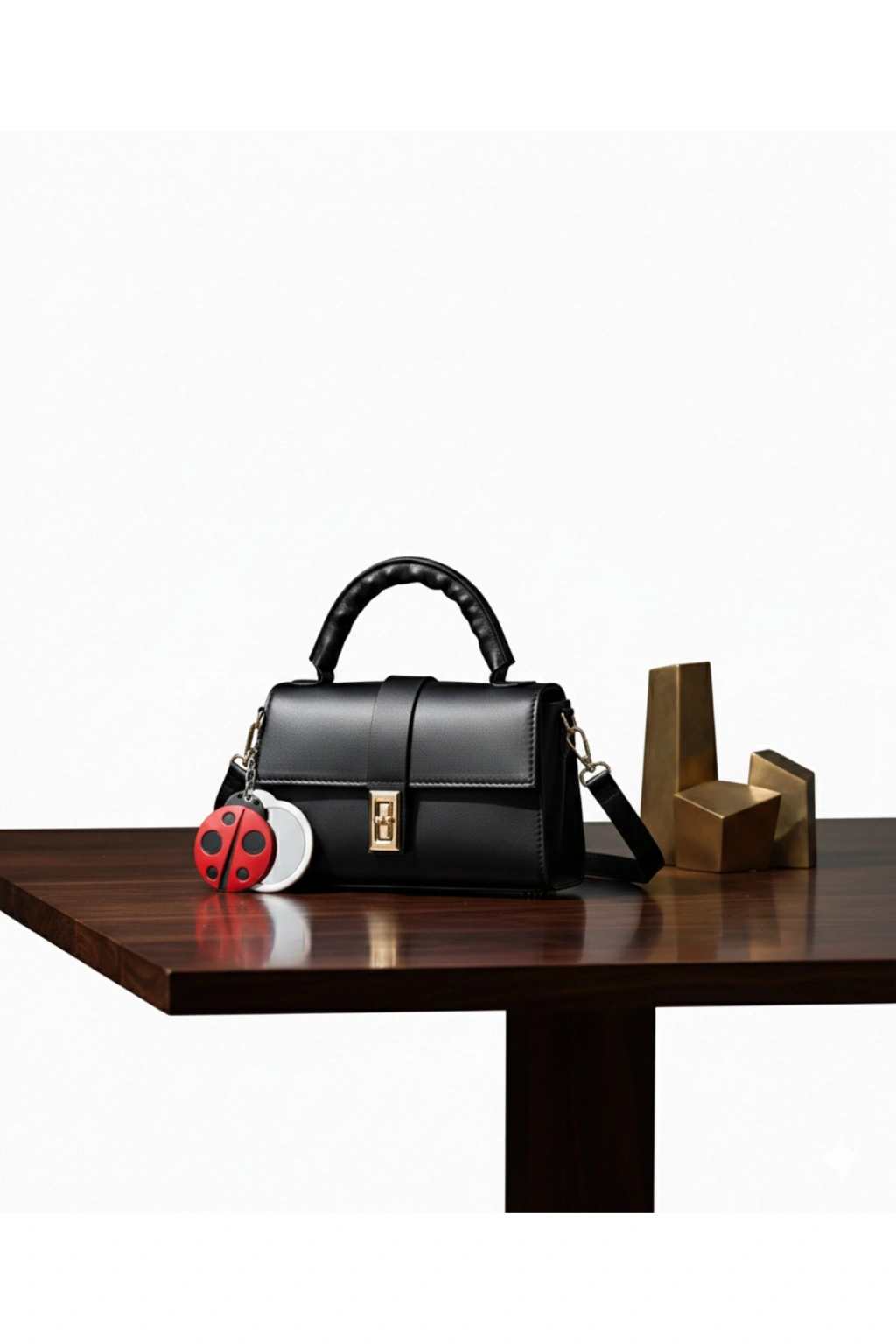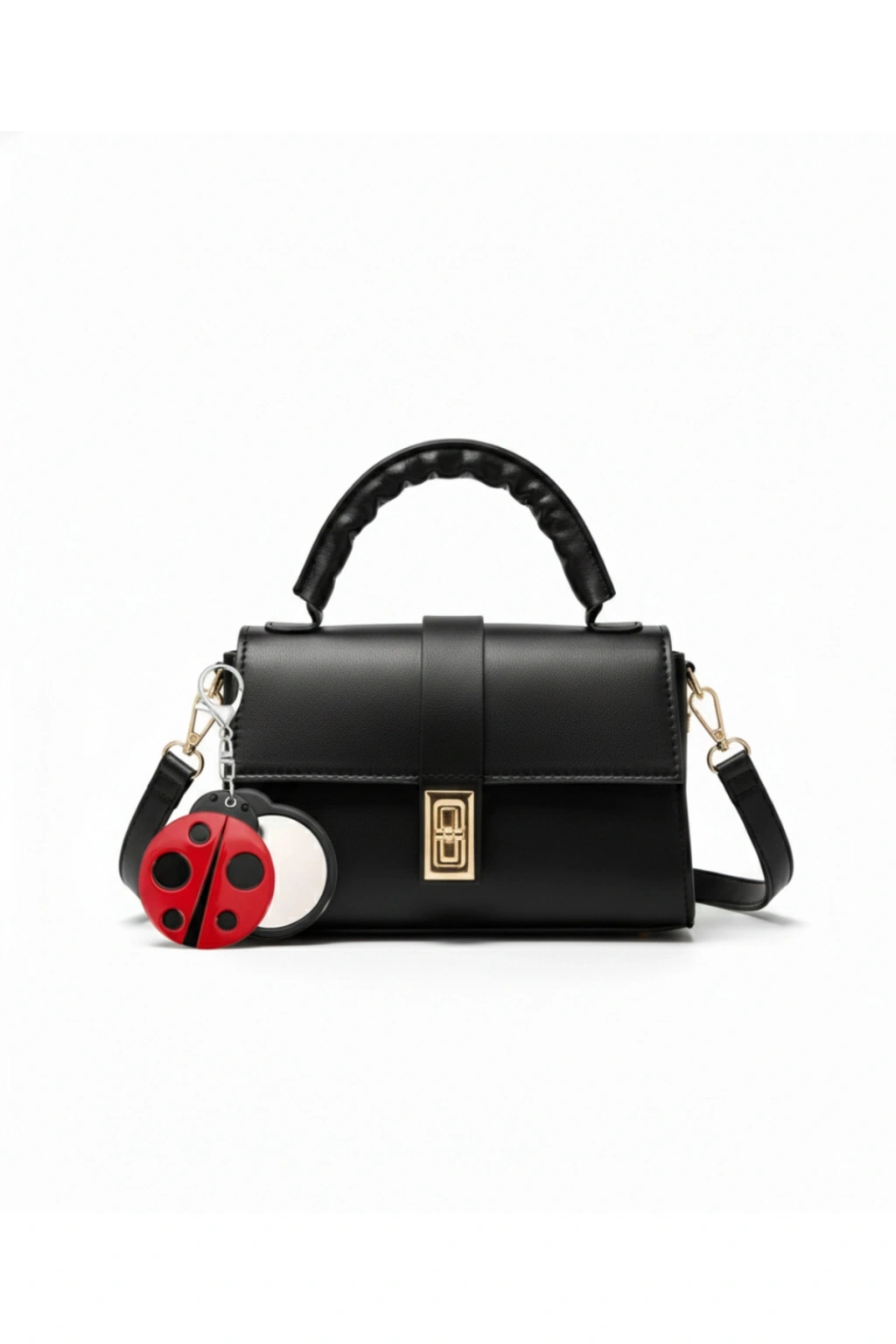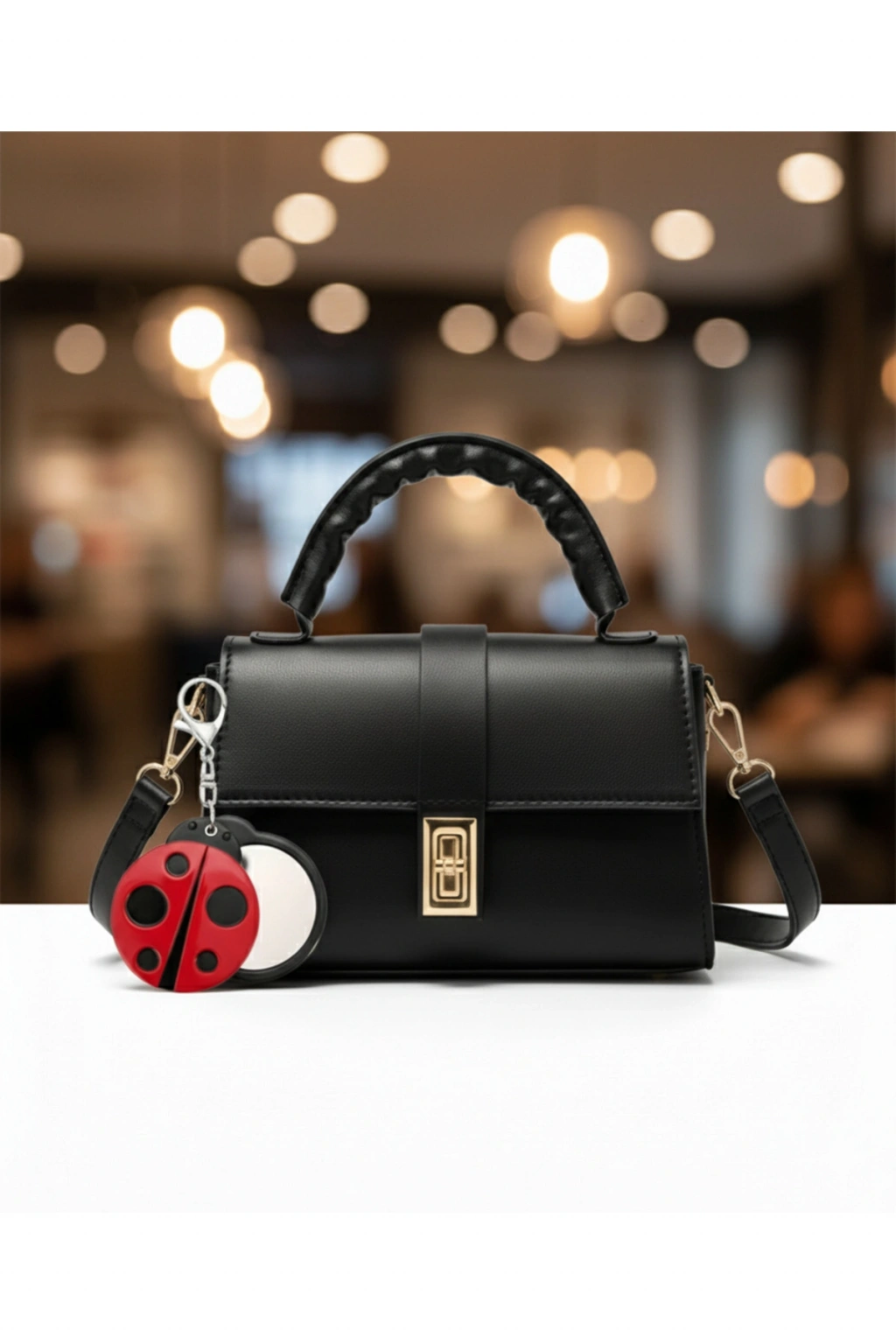 Omuz ve El Çantası Uğur Böcekli Figürlü Aynalı Anahtarlık Hediyeli, Mekanizmalı Günlük Sade Çanta