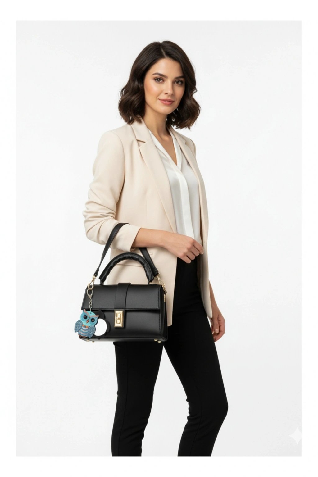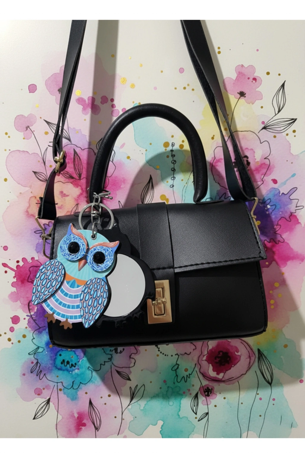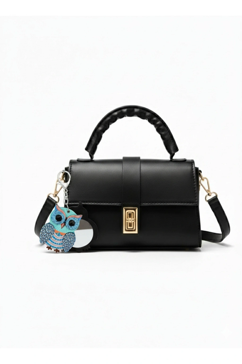 Omuz ve El Çantası ve Baykuş Figürlü Aynalı Anahtarlık Hediyeli, Mekanizmalı Günlük Sade Çanta