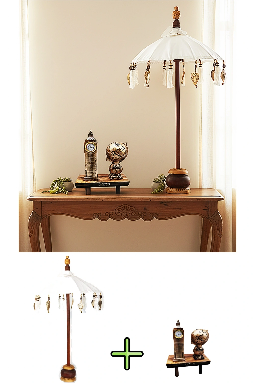 - El yapımı Bali şemsiyesi, dekoratif London Saat Kulesi ile birlikte sunuluyor ve masa üstü dekorasyonunuzu zenginleştiriyor.; - 80*40 cm boyutlarındaki bu şık şemsiye, mekanınıza otantik bir dokunuş katıyor.; - Çok renkli tasarımıyla göz alıcı bir görünüm sunan bu ürün, mekanınızda renkli bir atmosfer yaratmanızı sağlıyor.; - Dekoratif London Saat Kulesi, hem estetik hem de işlevsel bir aksesuar olarak dikkat çekiyor.